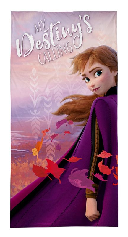 Detská osuška s obľúbeným motívom Ľadové Kráľovstvo 2 Anna je vyrobená v rozmere 70x140 cm z bavlneného froté. Plážová osuška má farebnú tlač len z jednej strany. Z rubovej stany sú biele froté slučky, ktoré veľmi dobre sajú.